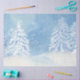 "Winter Snow Falling Weihnachtsbaum Blue Watercolor Tissue." Der Hauch eines Waldes während des Schnees ist ein magischer, friedlicher Moment, gefangen in diesem originalen Kunstwerk, das von Audrey Jeanne Roberts, einem international anerkannten Künstler und Designer, in Acrylfarben handgemalt wurde.