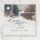 Ein schönes Aquarell Winterschnee Landschaft Hochzeitsdesign. Ein einzigartiges Design, das sich durch immergrüne Pinienbäume im Schnee mit einer schönen Landschaft im Hintergrund auszeichnet. Ein elegantes Design mit Schneebergen und Bäumen. Ein Winterschnee-Thema Gastgeschenk Hochzeit Tag Design mit modernen staubblauen Elementen. Auch die passenden Hochzeitseinladungen und andere Schreibwaren sind verfügbar.