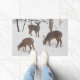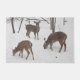 Diese drei kleinen Hirsche, ein Spitzbuck und zwei Dosen, graben nach etwas zu essen nach einem Schneesturm.
