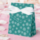 Aquamarine blaue Gefälligkeitsbox mit Schleifenbogen. Die Box ist mit weißen und grauen Schneeflocken in verschiedenen Größen geschmückt. Ideal für Party, Gastgeschenke, Backwaren und vieles mehr. Design ist in einer kuratierten Sammlung moderner Ferienfarben verfügbar. Kontaktieren Sie uns für eventuelle Anpassungen. Gute Ferien!