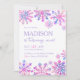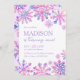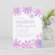 Winter Geburtstag Einladung mit Aquarellpinke und lila Schneeflocken und eleganter Typografie