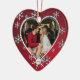 Herzförmige Foto-Sake-Ornament mit individualisierbarem Text und Foto.