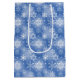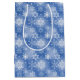 Weißes Schneeflockenmuster auf schimmerndem winterblauen Hintergrund