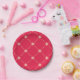 Dieses moderne Design zeichnet sich durch ein cremefarbenes Schneeflockenmuster aus, das im rubinen Hintergrund #christas #holidays #saisonale #christenparty #holidayparty #holidayparty #winter #snowflakes #partysupplies #partyplate #tableware #paperplates