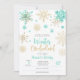 Winterschneeflocken im Glitzer laden zum Geburtstag eines einjährigen Babys ein. Pastel und super niedlich. Bearbeitbarer Name, Adresse.