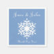 Mit diesen Servietten schaffen Sie mit einem pastellblauen Hintergrund, der mit einem weißen Schneeflocken dekoriert ist, einen koordinierten Look für Ihre winterliche Hochzeit oder Veranstaltung und lassen Sie sich mit einem Muster-Text verwöhnen, den Sie Ihren Wünschen anpassen können. Diese Serviette passt zu allen anderen Winterschneeflocken des Periwinkle-Produkts, sodass Sie Ihre Veranstaltung so koordiniert gestalten können, wie Sie es wünschen.