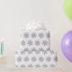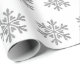 Ein schlichtes silbernes Schneeflockenmuster aus Glitzer und ein weißer Hintergrund zieren dieses Packpapier. Spaß für den Weihnachtsurlaub. Entworfen für Sie von BlackBerry Boulevard.