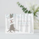 Eine Winterhochzeit Save the Date mit einer Abbildung eines Baumes in einem Schneewald. Der Baum hat blaue und silberne Blätter, sichtbare Wurzeln und einen Kofferraum, der mit Bannern umhüllt ist, die mit den Namen von Braut & Bräutigam angepasst werden können.
