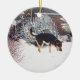 Winterschneeszene mit niedlichem schwarzem und tan keramik ornament