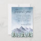 Hochzeitsdesign mit Aquarell, das eine verschneite Berglandschaft und Pinienbäume in Blau- und Grautönen darstellt. Der Text kann leicht für ein einzigartiges Design für Ihren besonderen Tag personalisiert werden.Eine schicke Wahl für elegante Winterhochzeiten in Berg oder Wald