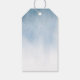 Frostige Küsse und Winterwünsche. Winterhochzeitgestaltung mit Aquarellfarben, die eine verschneite Berglandschaft und Pinienbäume in Blau- und Grautönen darstellen. Der Text kann leicht für ein einzigartiges Design für Ihren besonderen Tag personalisiert werden. Eine schicke Wahl für eine elegante Winterhochzeit in Berg oder Wald