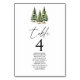 Dies ist eine Winter-Schneewald Pine Tree Hochzeit Tischnummer mit Namen!