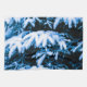 Im Winterwald bedecken sich mit frischem Schnee bewachsene Bäume. Es schneit. Schneeflocken in der Luft. Dunkelgrüne, blaue und weiße Farben des düsteren und schneebedeckten Wintertages. Weihnachten, Weihnachten. Viel frische Luft, der Geruch von Schnee und Fichtenwald. Die Urlaubsatmosphäre, das Gefühl der Anfang des Märchens.