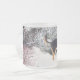 Dieses originelle Weihnachtsbild ist ein Gemälde eines niedlichen kleinen Schwarz-Bein Mischhundes, der an der dicken Schneeschicht, die er gerade zum ersten Mal im Garten entdeckt hat, schnüffelt und kratzt. Dieser kleine Hund heißt Eddie, er ist ein deutscher Hirtenkreuzer und genießt das kalte Wetter in seinem Wintergarten. Im Hintergrund dieses festlichen Bildes kann man einen kleinen Graugarten Gnome sehen, der still sitzt und sein Buch am Rand des kleinen schneebedeckten gefrorenen Teiches liest. Es gibt auch viele schneebedeckte Gartensträucher und eine alte Holzhütte im Garten von Eddie, all das verleiht dieser schönen kleinen Weihnachtsschneeszene-Tasse ein besonderes Augenmerk.