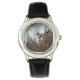 Uhr, Klassische Damenuhr mit schwarzen Lederarmband