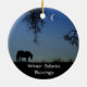 Ein wunderschöner Weihnachtsschmuck eines Pferdes und Halbmondes mit dem Winter Solstice Segen darauf. Ein surrealer Fantasy-Urlaubssornament.