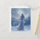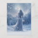 Eine schöne Böhmerin schaut sich den Nachthimmelmond an und Sterne im Schnee für die Wintersonne. Eine schöne heidnische Urlaubskarte.