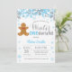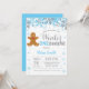 Wintersonntag Weihnachten Gingerbread Man Boy 1. Geburtstag Einladung. Blauer und grauer Schneeflocken. Einladung zur Geburtstagsparty. Winterurlaub am Tag. Weißer Hintergrund