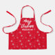 Moderne Weihnachtsstipps Schürze mit weißem Schneeflockmuster und personalisiertem Namen in weißer Typografie. Perfekt für alle Familienmitglieder.