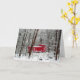 Eine rote Zugkabine in einem schneebedeckten Wald. Foto aufgenommen in "The Edward Lowe Foundation"). Von Gina Signore