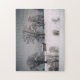 Winterszene, Hügel und Bäume, Hütte Puzzle