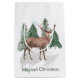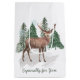 Winterweihnachtszene - schneebedeckte Pinien und Hirsch. Schaffen Sie Weihnachtsatmosphäre, legen Sie Ihre Geschenke in diese Tasche und schreiben Sie den Namen.