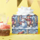 Eine gemütliche Szene mit einem Teddybär und einem Schneemann, der in passenden Rothüten und Schals gekleidet ist und eine Winterlandschaft genießt