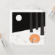 Schöne Winter-Illustration eines schlafenden Fuchses im verschneiten Wald. Vollmond scheint im dunklen Himmel und im Hintergrund sind einige Bäume. Abstrakte Darstellung für Erwachsene und Kinder. Made with Liebe by UtArt.