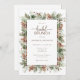 Dieses Winterferien-Brunch | Duscheinladung mit handgemalten Aquarellen und Pinecones, die als schöner Rahmen angeordnet sind. Der Text ist braun und der Hintergrund weiß. Auf der Rückseite befindet sich ein stilvoller, passender Bouquet. Finden Sie passende Artikel in der Weihnachtskollektion Pinecone und Greenery.