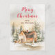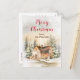 Diese schöne und festliche Weihnachtskarte in Aquarellen kann mit Ihrem Familiennamen personalisiert werden. Es verfügt über eine rustikale Hütte, umgeben von Schnee und Bäumen. Es gibt bezaubernde Tiere, wie Elche und Hundshunde, aber auch Blattwerk. Der Text kombiniert handgeschriebene Skripte mit serifenlosen Schriftart für ein stilvolles und modernes Design.