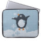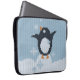 Gezwirnter, kleiner niedlicher Pinguin freut sich über fallende Schneeflocken