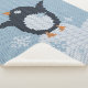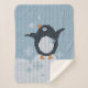 Gezwirnter, kleiner niedlicher Pinguin freut sich über fallende Schneeflocken