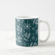 Tasse von Creative_Curve für Zazzle. Winterurlaubsgestaltung mit Blätter, Schneeflocken und Schnee in weiß und aquamarinem Untersetzer.