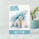 Eine niedliche Aquarell-Geburtstagskarte mit einem Winterbären auf der Vorderseite mit "Happy Birthday" in einem weißen, klopfen Schriftart. Personalisieren Sie die Vorderseite, indem Sie Ihren Namen hinzufügen. Auf der Rückseite der Karte ist Platz für Ihre getippte oder handgeschriebene Nachricht vorhanden.