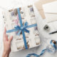 Niedliche Geburtstag Packpapier mit einem Aquarelldüster. Für winterlich geborene Menschen. Passen Sie dieses Produkt an, indem Sie Ihre Party-Informationen hinzufügen.