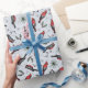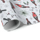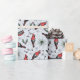 Dieses festliche Naturerlebnis-Verpackungspapier zeichnet sich durch ein lustiges Muster von handgezeichnet Roten Kardinälen, Kiefern, roten Heiligenbeeren und winzigen Sternen aus.