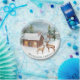 Dieses Design zeigt eine Aquarellbilder der Winterwaldlandszene - die Tannen, die Blockhütte, zwei Hirsche. Sie können Text nach Ihren Wünschen anpassen