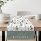 Mit diesem personalisierten Wald-Kiefernholz-Tischläufer von Redwood & Vine Design Co. Mit einem rustikalen, sich immer wieder grün wiederholenden Baummuster und einer schlauen grünen Personalisierung ist dieses Design perfekt, um Ihren Familiennamen, einen Urlaubsgruß oder Sondertext zu präsentieren. Dieser Läufer, der für Weihnachtsessen, Winterferien und saisonale Unterhaltung konzipiert ist, verleiht Ihrem Tisch Wärme und Eleganz und verbindet Ihr Urlaubsstil mit einer waldlandseitig inspiriert Touch.