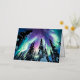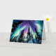 Hübsche lila und aqua grüne abstrakte Nordlichter in einem nördlichen Fichtenwald. Typische Alaskan Szene in einem großen Teil von Alaska. Das ist meistens AI-Generatives Design mit etwas digitaler Kunst. Fügen Sie einen personalisierten Text hinzu, um Ihre eigene Winterlandschaft Foto Postkarte zu erstellen. Die Typografie "Frohe Weihnachten" auf der Folienschicht ist anpassbar.