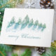 Winterwald mit Snow Watercolor Weihnachtskarte. Wasserfarbe zeichnend von einem Wald im Winter und Schnee, Winterbäume mit Schnee in blau und grün.