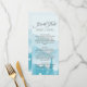 Vervollständigen Sie Ihre Tischabstimmung mit den Hochzeitsmenükarten der Winterwaldkiefernwälder. Die Karten sind in einem modernen staubigen blauen Ton gestaltet und verfügen über schneebedeckte Kiefernbäume und eine Bergkulisse für ein gemütliches Winterwaldambiente. Ideal für rustikale, waldreiche oder bergische Hochzeiten.