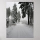 Winterwald, ein schneebedeckter Waldweg im tiefen Winter, wurde in harten Bergen, Deutschland, fotografiert
