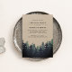 Unser rustikales und winterliches Abendessen in der Probe mit Kiefern und Kiefern mit einer kühlen Waldatmosphäre, mit einem üppigen Pinienwald in reichen Schattierungen von Mitternachtsblau und Holzkohleschwarz. Ideal für Winterabende in Wald, Wald, Berg oder im Freien, werden diese Einladungen auf braunem Kraftpapier gedruckt und Ihre Probe zum Abendessen in schwarzer Typografie präsentiert. Karten kehren zu einem koordinierenden Kiefernwaldmuster zurück.