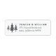 Diese rustikalen Rücksendeadressen-Aufkleber aus Wäldern sind so konzipiert, dass sie zu unserer Hochzeitskunst und Geschäftskollektion im Winterwald passen. Sie verfügen über ein Trio aus Kiefernbäumen, die in stimmungsvoller Holzkohle und Blau gehalten sind, sowie über drei Textzeilen für Ihren Namen und Ihre Rücksendeadresse.