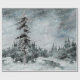 Aquarell bemalte Winterwald bei Dämmerung mit den Worten, Frohe Weihnachten, in einer silbernen Kalligraphie auf dem Papier geschrieben.