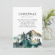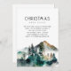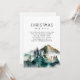 Winterwald Weihnachtshaus. Verfügbar in digitaler Form und gedruckt. Ein festlicher Wasserfarbenwald grenzt an den unteren Rand, unterhalb der Worte. Einfach auf Ihre eigenen Daten personalisieren.