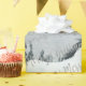 Ein Aquarell gemalt Winterwald bei Dämmerung, mit einem wilden weißen Pferd im Vordergrund, und die Worte, Frohe Weihnachten, in einer silbernen Kalligraphie auf dem Papier geschrieben.