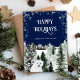Eine wunderschöne Visitenkarte mit friedlichem Winterwald, Schneebäumen und einer niedlichen Eisbärenkuppe. Ideal für den Versand der Begrüßungen der Saison an Kunden, Mitarbeiter und alle auf Ihrer Liste. An der Vorderseite der Karte steht "Happy Holidays" und Ihr Firmenname. Auf der Kartenrückseite finden Sie Ihre personalisierte Urlaubsnachricht. Feiern Sie die Saison mit dieser eleganten Urlaubskarte von Cherry Lane Designs!