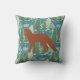 Ein farbenfroher Winterwald mit gemustertem Rotfuchs-Kissen mit einem hübschen aquamarinen blauen Himmel, Schneeflocken, Wolken, immergrünen schneebedeckten Bäumen und kleinen roten Füchsen! Die Vorderseite und hinten haben beide eine größere Silhouette roten Fuchs!