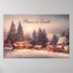 Erleben Sie die zeitlose Schönheit eines "Friedlichen Winterdorfes" mit unserem bezaubernden Poster. Dieses exquisite Kunstwerk bringt Sie in ein schneebedecktes Dorf inmitten eines ruhigen Waldes. Hochwertige Kiefernbäume, deren Äste mit glitzerndem Schnee beladen sind, bilden einen Schutzdach über den reizvollen Holzhäusern mit ihren Strohdächern. Fühlen Sie sich frei, die Nachricht von "Weltfrieden" zu "Was auch immer Wörter oder Pharase Sie wünschen" zu ändern oder einfach die Nachricht zu löschen, wenn Sie nur für den Hintergrund wünschen